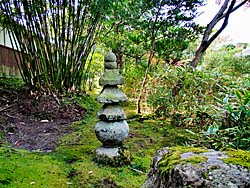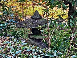 京都府八幡市にある「松花堂庭園」その12です。 茶室前のアプローチを撮してみました。石燈籠もありましたが、石を積み重ねただけの趣のあるものです。植えられていた笹は「メダケ」です。
