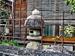 城陽市上津屋地区の民家の庭には、ほぼ100%石灯籠があります。それも等身大など大きなものが多いです。そんな石灯籠を垣根越しに撮しました。