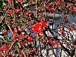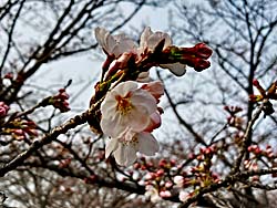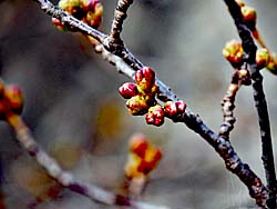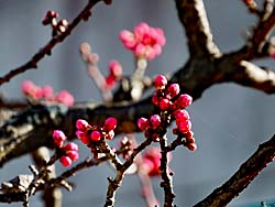 暖かい日が多くなってきました。春の訪れです。彼岸桜は満開です。(写真左) ボケも満開です。(写真中央) そして、ソメイヨシノは蕾が膨らんできました。程なく開花するでしょう。(写真右)