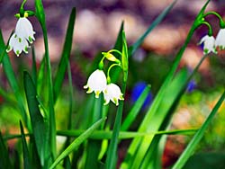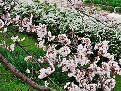 嫁付川の桜並木の続きです。 ソメイヨシノの根元には、いろいろなものが植えられています。「ツバキ(椿)」とスズラン(鈴蘭)によく似た「スノーフレーク」和名は「スズランスイセン(鈴蘭水仙)」も咲いています。