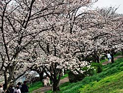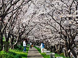 木津川堤・寺田地区、百本の桜並木のその2です。ソメイヨシノ(染井吉野)のトンネルになっています。