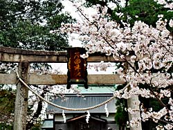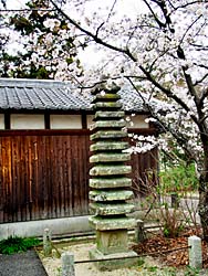 流れ橋の近くにある「石田神社」のソメイヨシノです。 南北朝時代のものとされる十三重石塔にも、ソメイヨシノの花びらが降りかかっていました。