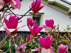 中国原産でモクレン科の落葉広葉樹「モクレン(木蓮)」が満開です。 写真右は、花が紫色でなので「シモクレン(紫木蓮)」とも呼ばれています。
