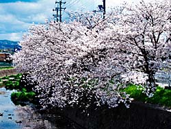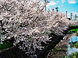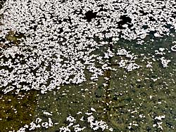 早くも桜は散り始めました。枝には花が少なくなり、枝から離れた花は川に花びらとして流れています。道端には、土筆(つくし)が数多く顔を出していました。