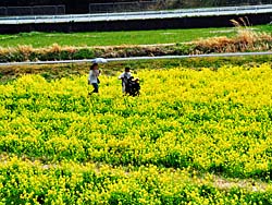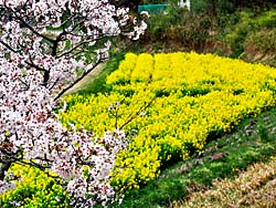 京田辺市の「観音寺」前には、菜の花畑が広がっています。菜の花と桜のコラボを見ることができます。一面に菜の花の香りが漂っていました。(動 画)