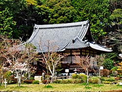 菜の花の香りが漂う参道を行くと、普賢寺大御堂とも呼ばれている、真言宗の「観音寺(かんのんじ)」の伽藍が見えて来ました。