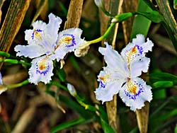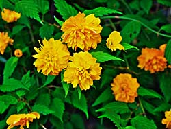 シャガ、八重咲ヤマブキ、アブラナ科の花が咲いていました。