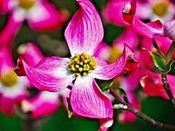 北米原産で、ミズキ科の落葉高木「ハナミズキ(花水木)」です。紅白の花を撮しました。