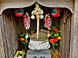 流れ橋の城陽市側に、小さな石仏が祀ってあります。10月中旬頃は、写真左・中央のように祠が無かったのですが、今は真新しい祠が出来ていました。これで、暖かく冬が過ごせることでしょう。
