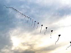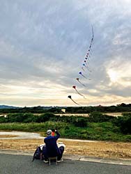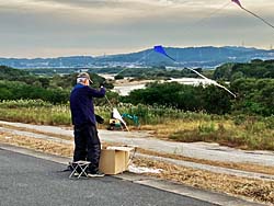 木津川の土手で、凧揚げをしている年配の人がいました。連凧です。久し振りに見ました。