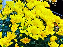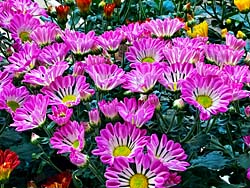 ホームセンター花卉売り場の花です。 中国原産、多年草でキク科の「ポットマム(洋菊)」です。ポットマムは、鉢植え(ポット)の菊を指します。1950年代にアメリカで鉢植用に品種改良が行われて、ポットマムという名称で販売されました。