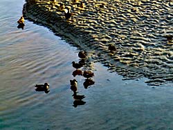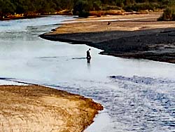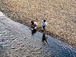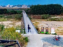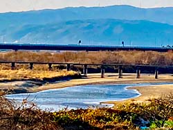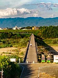 小春日和の暖かい日(晩秋から冬の暖かい日を「小春日和」と言うのですが)の流れ橋には、人出も多く川の中に入る人、水遊びをする子供らがいました。