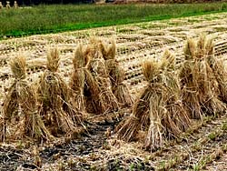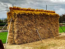 稲刈りが終わって一カ月以上経つと、稲は再び芽を出し田植えの頃のような、状態になっています。ところどころに稲わらが干されていました。