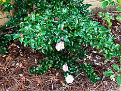 近所の生け垣に使われていた、「サザンカ(山茶花)」です。