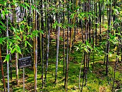 京都府八幡市にある、史跡・名勝の「松花堂庭園」に行きました。松花堂昭乗(1584-1639)が建てた草庵です。数多くの竹林が迎えてくれます。写真は、「クロチク(黒竹)」です。
