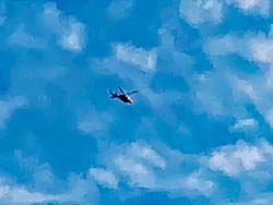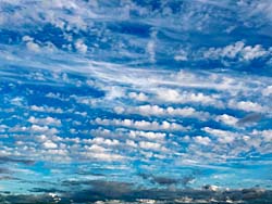 見上げた青空の三風景。 写真左から、「昼の月」です。 爆音を轟かせてヘリコプターが飛んでいました。 うろこ雲というより宮崎県の観光地「鬼の洗濯岩」の雲版でしょうか。