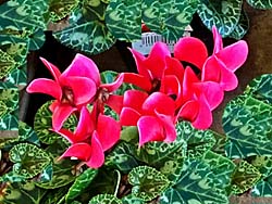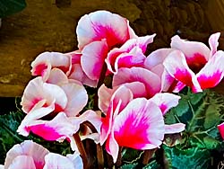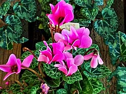 ホームセンター花卉売り場の花です。 ヨーロッパ地中海地方原産で、サクラソウ科の多年草「シクラメン」(写真左・写真中央)です。 ヨーロッパ南部地方原産で、ナデシコ科の多年草「アメリカナデシコ(亜米利加撫子)」(写真右)です。