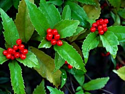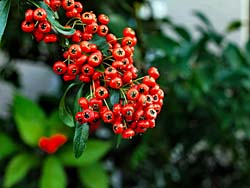ご近所で植えられていた、赤色の木々です。 ハゼ、センリョウ、ピラカンサです。