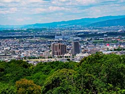 「鴻巣ノ山展望台」という道標に沿って登って行くと、山頂に東屋があります。ここで一休みしながら城陽市内を一望することが出来ます。(動 画)