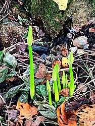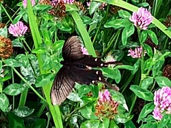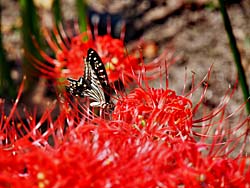 草むらでは、キリギリスが鳴いていましたが(動 画)、どことなく元気がありません。ほどなくコオロギに居場所を与えそうです。花には、アゲハチョウが蜜を求めて飛んでいました。アスパラガスのようなものは、彼岸花の新芽です。まもなく開花しそうです。