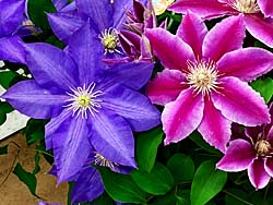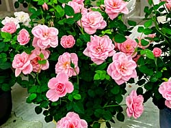 ホームセンターの花卉売り場その14です。 暑苦しさを感じる部屋に、涼風を感じさせる観葉植物の「テーブルヤシ」(写真右)です。 バラ科の「バラ(薔薇)」(写真中央)」です。 キンポウゲ科の多年草「クレマチス」(写真左)です。クレマチスより「テッセン(鉄線・鉄仙)」の方が、馴染み深いですね。