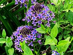 道端に咲いていた、熱帯アフリカ原産でヒアシンス科の多年草「シラー」です。(写真左) 中国原産でナデシコ科の多年草「セキチク(石竹)」です。(写真中央) そして、ヨーロッパ原産でアオイ科の多年草「ゼニアオイ(銭葵)です。道端でも、世界の花が見られるものですね。