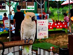 京都府立るり渓自然公園その3です。 幼児・児童用の移動動物園がありました。飛び立たないように、羽の部分をテープで縛ってありました。可哀想な光景です。