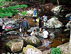 京都府立るり渓自然公園その4です。 川遊びができるるり渓で、少し深いところで泳ぐこともできます。子供たちの絶好の遊び場になっています。(動 画)