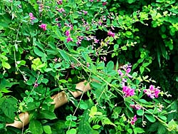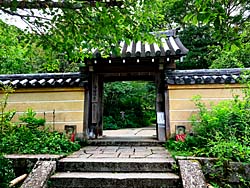 京都府木津川市加茂町にある真言律宗「浄瑠璃寺(じょうるりじ)」に行きました。 秋の七草の一つのハギ(萩)が迎えてくれました。その参道を行くと山門があります。早春には、堀辰雄の「浄瑠璃寺の春」にも登場する、アセビ(馬酔木)が出迎えてくれる参道でもあります。