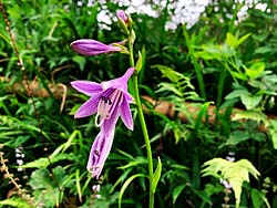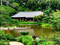 浄瑠璃寺その3です。 左から、池越しの本堂です。 境内で咲いていたハマユウの一種「クリナム」です。 そして、「キキョウ」です。浄瑠璃寺には、四季それぞれの花が、数多く植えられています。