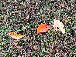 いつもの桜並木です。 ソメイヨシノの葉も紅葉してきました。秋が確実に訪れてきています。落葉が盛んで、もう冬支度なのでしょうか。木々には、ツクツクボウシが夏の名残を感じさせます。(動 画)