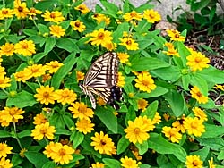 キク科の多年草「ダリア」です。和名は、花の形がボタンに似ているため、「テンジクボタン(天竺牡丹)」と呼ばれました。そして、「アゲハチョウ」が舞っていました。
