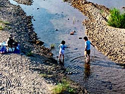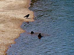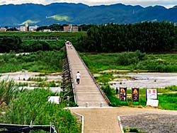 石田神社の帰り道の流れ橋を渡りましたが、川で子供らが水遊びをしていました。なんと、カラスも水遊びをしています。これこそ、「烏の行水」ですよね。