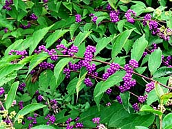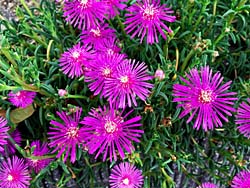 道端から見られた、シソ科の「ムラサキシキブ(紫式部)」(写真左)です。 ハマミズナ科の「マツバギク(松葉菊)」(写真中央)です。「フィグ・マリーゴールド」とも呼ばれています。 そして、キク科の「メランポジウム(メランポジューム)」(写真右)です。
