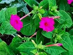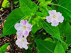 南アメリカ原産で、オシロイバナ科の多年草「オシロイバナ(白粉花)」です。 オシロイバナは、赤色がよく見られるのですが、白色、黄色の白粉花が咲いていました。