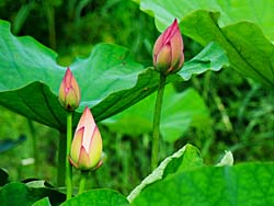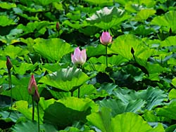近くに、休耕田を利用した蓮池がありました。つぼみが多く見頃は少し先のようですね。