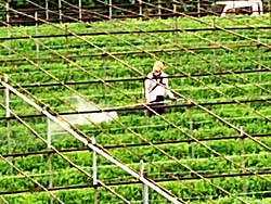 稲が順調に育っている田圃には、サギが羽を広げています。茶摘みが終わった茶畑は、薬剤散布が行われていました。そんな様子を向日葵が眺めていました。