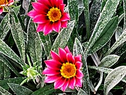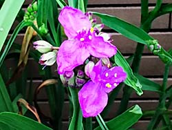 「ムラサキツユクサ」(写真左)と「ガザニア」(写真中央・右)です。