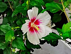 ホームセンターで、販売されていた花を撮して見ました。「ノウゼンカズラ」(写真左」、「西洋ニンジンボク」(写真中央)、そして一見ハイビスカスかと思った「ムクゲ」(写真右)です。