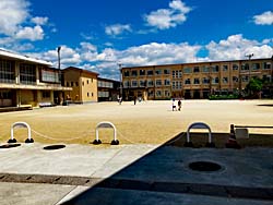 京都市左京区にあり母校でもある「京都市立北白川小学校」を撮しました。中に入ることはできませんので、周囲を一周しました。昔は講堂だったところは体育館になっています。(写真左)通用門から見た運動場で登下校はこの門からでした。(写真中央)通用門の向かいに文房具店がありました。、今もありましたがシャッターが閉まっていました。閉店?(写真右)