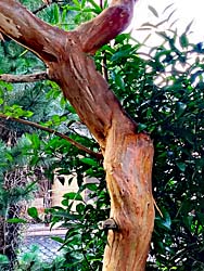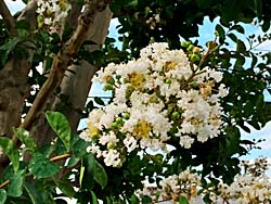百日紅です。白い百日紅は珍しいのではないでしょうか。紅白の百日紅を撮して見ました。サルスベリというのですから、この幹なら猿も滑り落ちるのでしょうか。