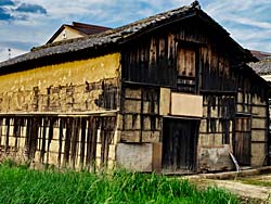 散歩で通る道筋には、日本の原風景のような、白壁の建物が見かけます。相当痛んでいる、倉庫のような建物もありました。そして、共同利用の野菜洗濯場がありました。