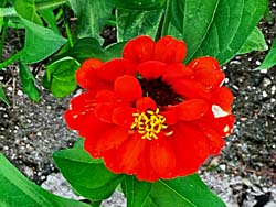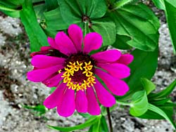 長く咲いているから名付けられた「ヒャクニチソウ」(写真左・中央)です。長く咲くと中心部が、大きく盛り上がってきています。そして、「ユリ」です。
