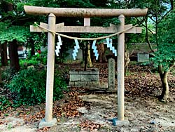石田神社その3です。 本殿参道の横に小さな鳥居があります。石標に「天照大神皇伏拝所」とあります。天照大神が、何に伏拝したのかが書かれてありません。その天照大神の小さな祠です。(写真右)
