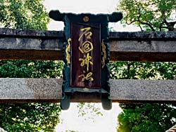 石田神社その4です。 いつ行っても誰もいない石田神社ですが、願い事を書いた絵馬も沢山掛けてあります。夕方になると現代の灯籠に明かりがつきました。振り返ると鳥居にある「石田神社」という文字が、歴史を感じさせますね。