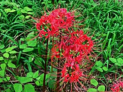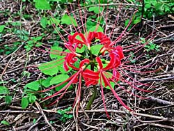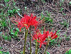 近くの石田神社に咲いている、曼珠沙華(ヒガンバナ)です。
