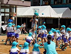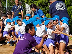 幼稚園の運動会に行ってきました。遊戯、綱引き、玉入れ、組み体操、徒競走は構えている先生の胸に飛び込むという、如何にも幼稚園の運動会です。