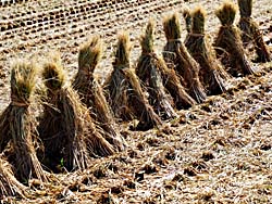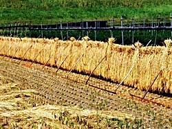 実りの秋がやってきました。稲穂が頭を垂れています。刈り取った後には、カラスが集まっていました。稲木がありました。昔は、稲を刈り取った後は稲木に稲を干すのが、当たり前のことでした。