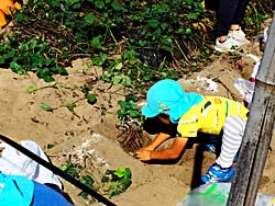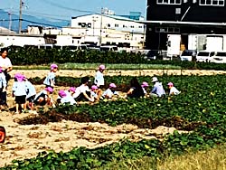 地元名産の「寺田イモ」の芋掘りが風物詩になっています。この日は、幼稚園児たちが芋掘りをしていました。この辺は砂地で、手だけで芋掘りができます。