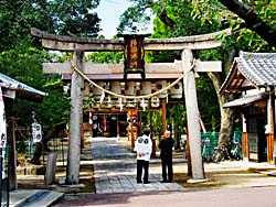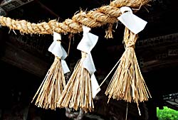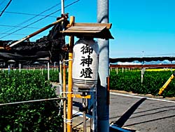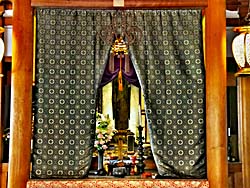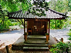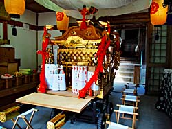 流れ橋の近くに地元の氏神の「石田神社」があります。石田神社のお祭りがあったので、神社に行ってみました。拝殿に小型の神輿がありました。町内を担いでまわるのでしょうか。